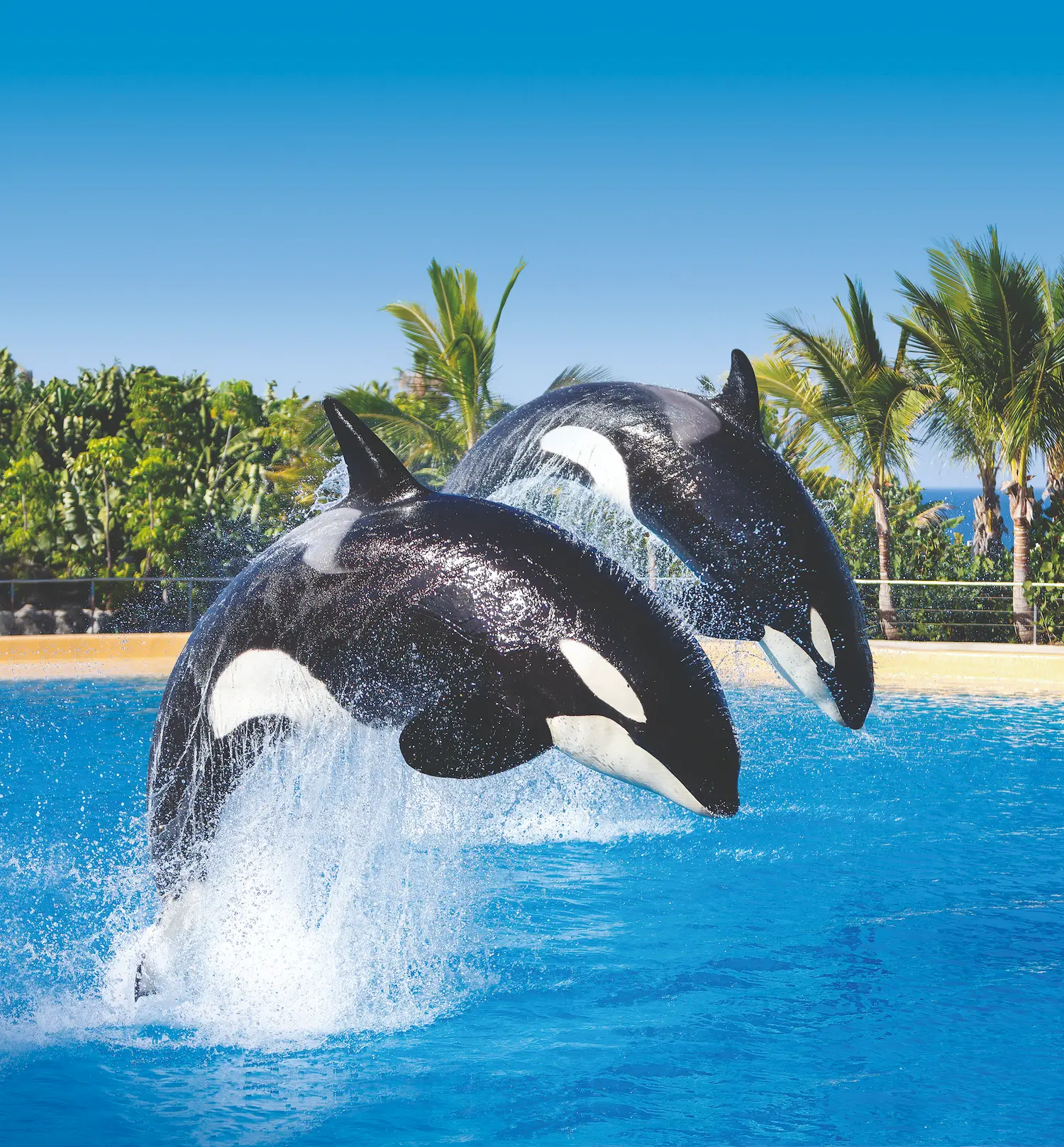 Die Orcas, auch als Schwertwahl bekannt, sind die größten Delfine der Welt und gehören zu den mächtigsten Raubtieren des Tierreichs. Man erkennt sie sofort an ihrer markanten schwarz-weißen Färbung. Gesellig und hochintelligent geben Orcas charakteristische Laute von sich, die die Mitglieder ihrer Gruppe noch in Kilometern Entfernung erkennen.