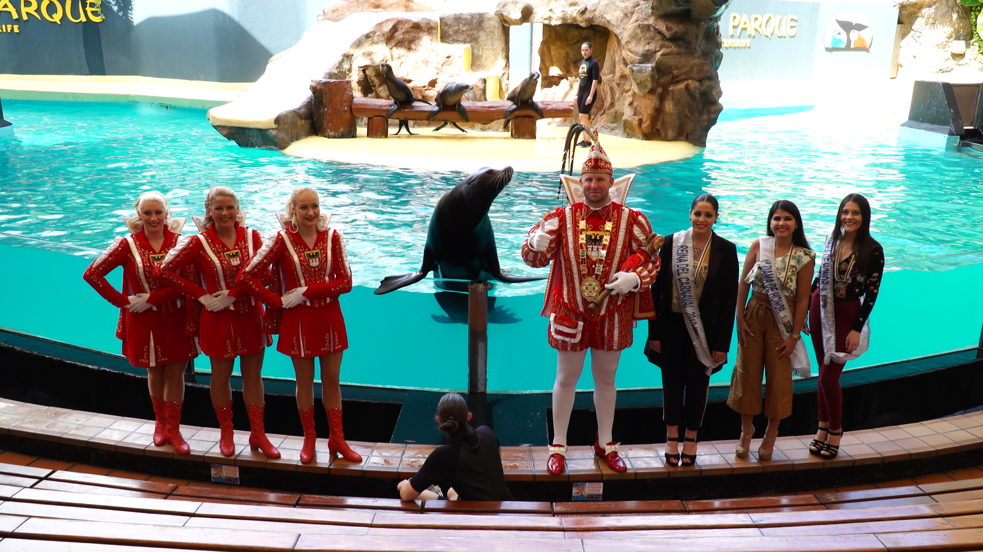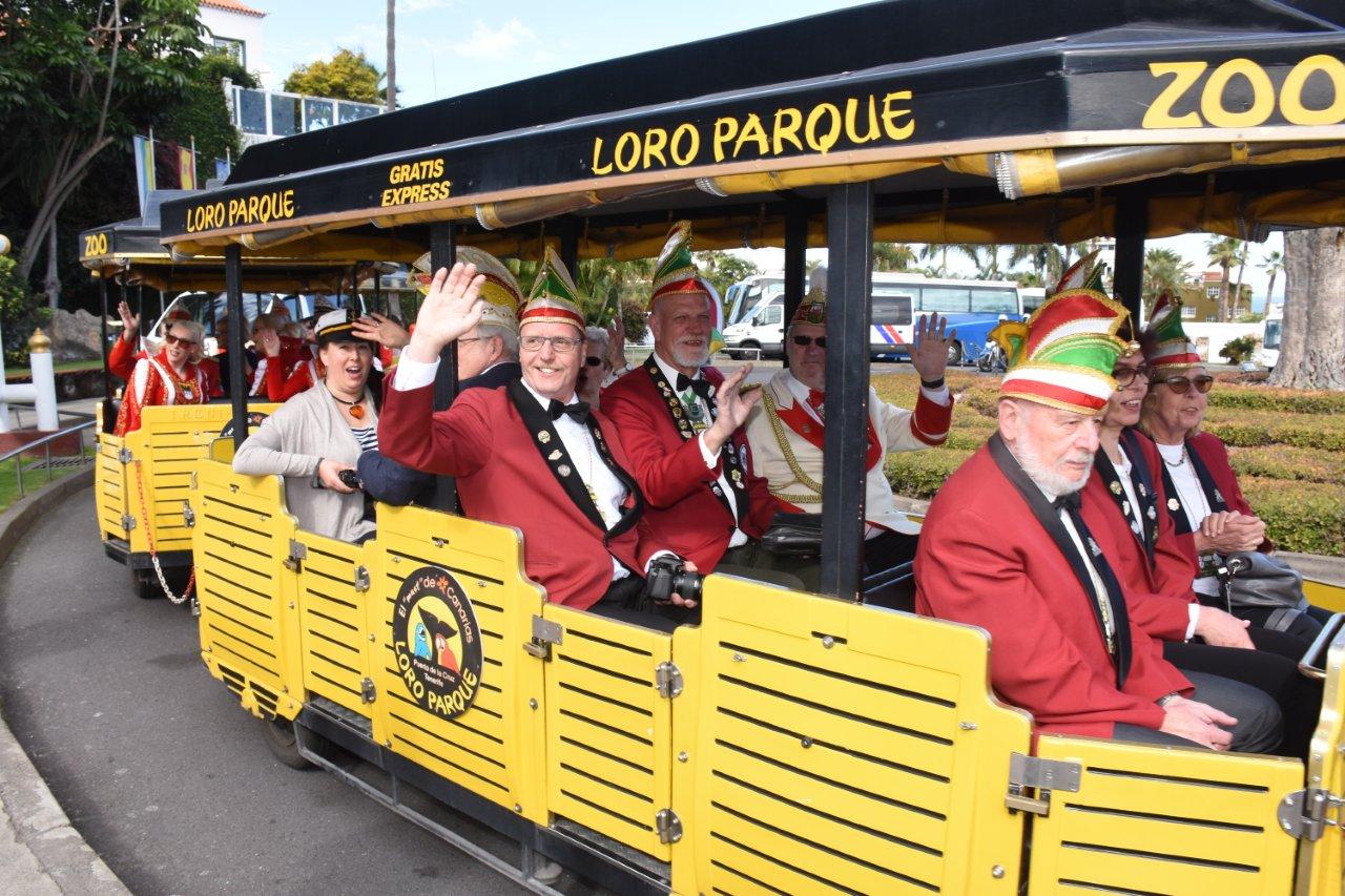 Zur Begrüßung waren der Präsident des Loro Parque, Wolfgang Kiessling, die Tourismusrätin der Stadt Puerto de la Cruz, Dimple Melwani und die amtierende Königin des Internationalen Karnevals von Puerto de la Cruz und Repräsentantin des Loro Parque, Paula Viera, gekommen. Das deutsche Komitee, bestehend aus über 50 Karnevalisten hat einen Rundgang durch den kompletten Park sowie die Shows der Seelöwen, Orkas und Delfine genossen.