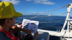Nachdem dieser Teil abgeschlossen war, begann der zweite Teil der Aktivität: Ein Bootsausflug im Süden Teneriffas, um das Gelernte in praktische Erfahrung umzusetzen. Während der Fahrt konnten die Schüler die Tiere identifizieren, die ihnen begegneten und verschiedene menschliche Aktivitäten analysieren, die das marine Leben beeinträchtigen können. Dazu zählen unter anderem Müll, aktustische Kontaminierung und die Aktivitäten zur Walbeobachtung, die unverwantwortlich durchgeführt werden oder der maritime Verkehr.