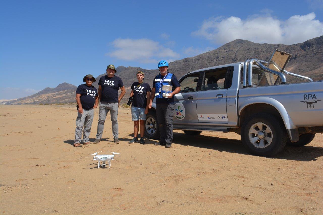 En este caso, en Fuerteventura, lo hace a través de la ONG Avanfuer, que está realizando un seguimiento de rastros de tortugas marinas en coordinación con la Consejería de Medio Ambiente, Lucha Contra el Cambio Climático, Economía circular e I+D+I del Cabildo de Fuerteventura, utilizando un dron. Además, como parte de su actividad, localizan y eliminan basura plástica de la playa de Cofete.
