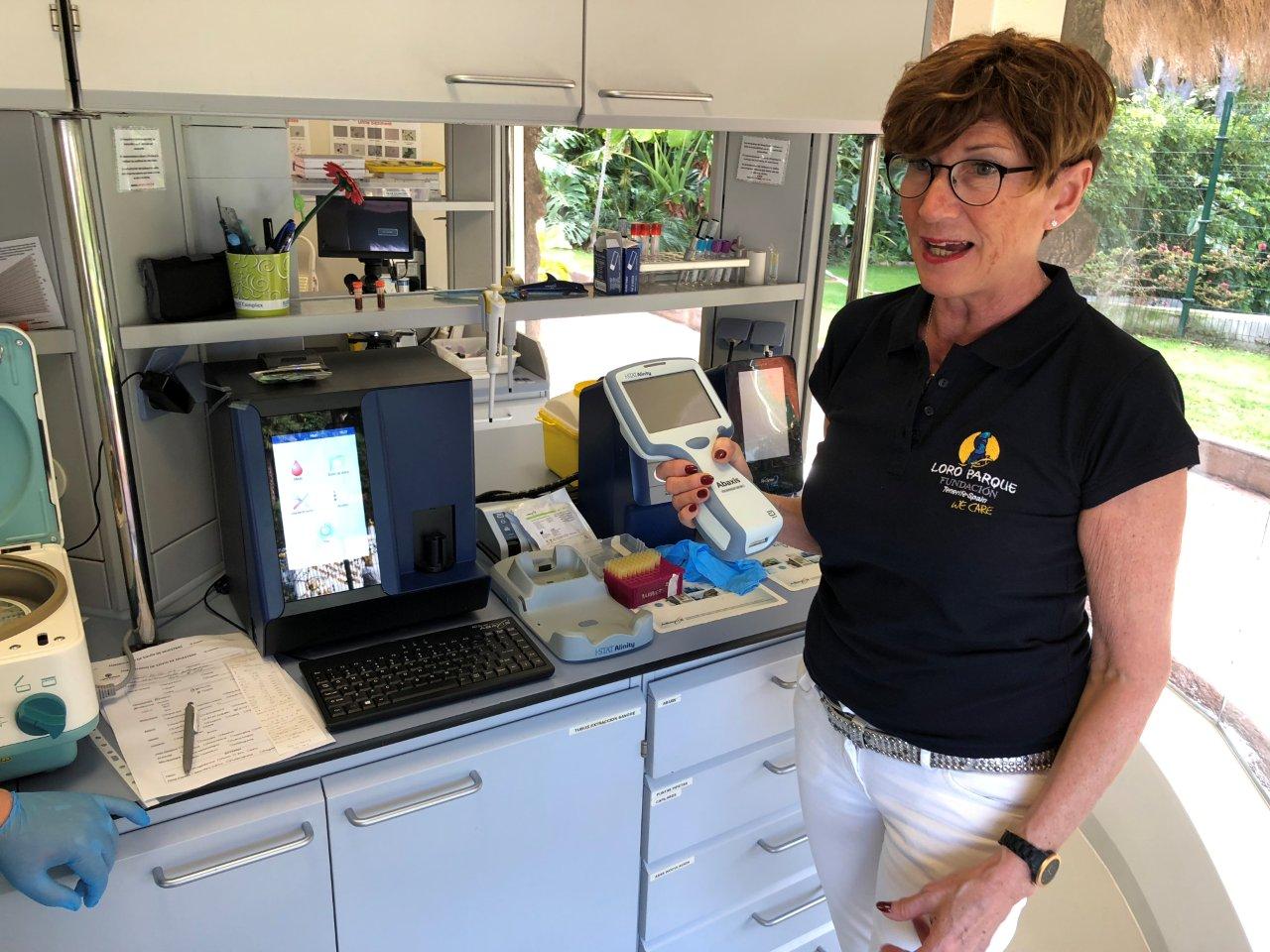 Este nuevo dispositivo supone un enorme beneficio para el equipo veterinario de Loro Parque, al poder ser utilizado en infinidad de especies diferentes y en cualquier parte: en el laboratorio, en las instalaciones del Parque, o incluso en proyectos de conservación “in situ” en los que se trabaja directamente con las poblaciones salvajes. Denominado ‘Alinity’, permite obtener resultados inmediatos e imprimirlos al instante, facilitando los procedimientos y acortando considerablemente los tiempos de procesado de la información.
