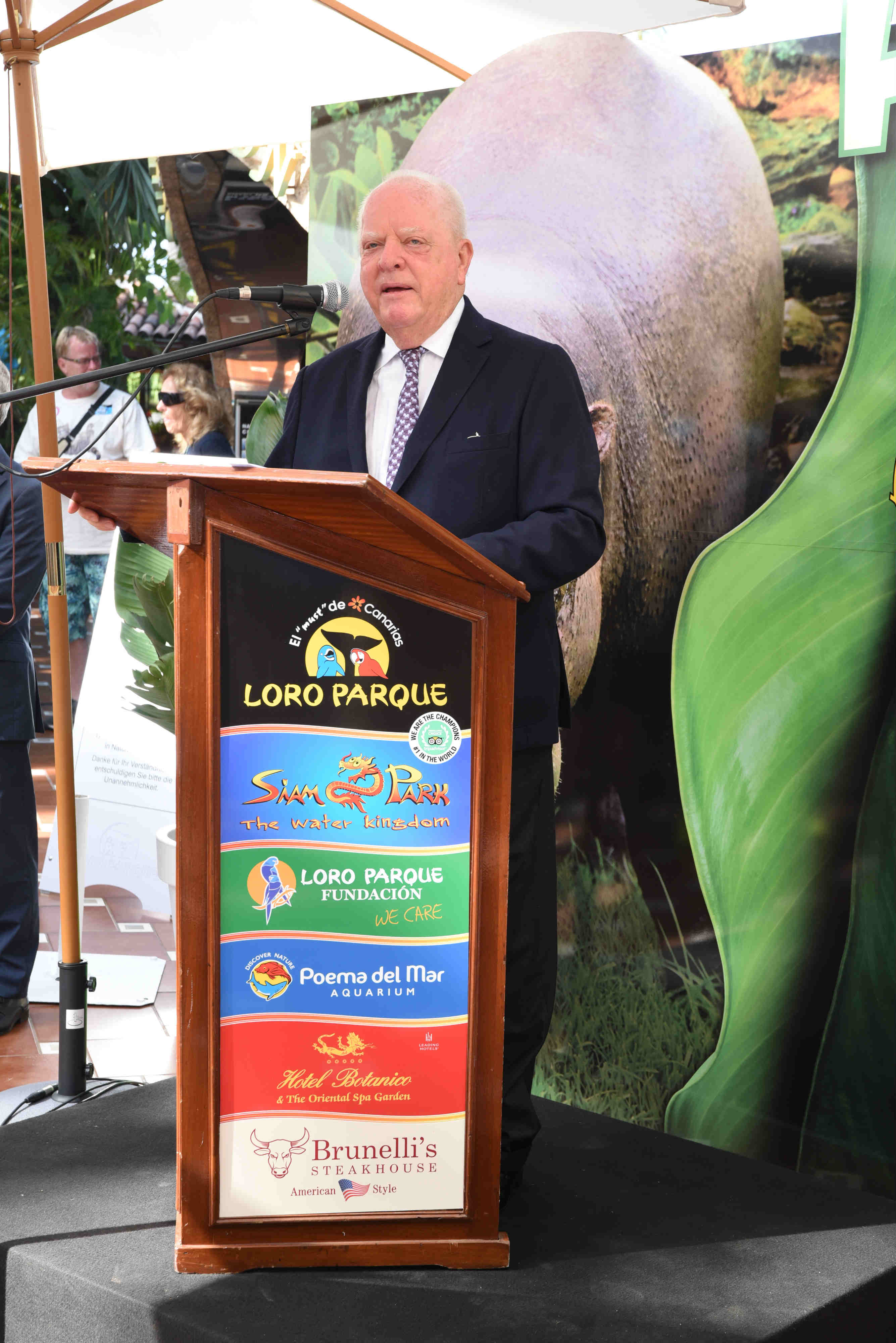 Loro Parque ha inaugurado hoy, martes 25 de septiembre, las nuevas instalaciones de los Hipopótamos Pigmeos, en un acto que ha contado con la presencia del Presidente de Loro Parque, Wolfgang Kiessling; el Consejero de Turismo del Cabildo de Tenerife, Alberto Bernabé, y el Alcalde de Puerto de la Cruz, Lope Afonso, entre otras autoridades. Estos nuevos integrantes de la familia del Parque, dos hembras que llegan directamente desde Alemania y República Checa, ya conviven en una instalación naturalizada especialmente diseñada para ellas.